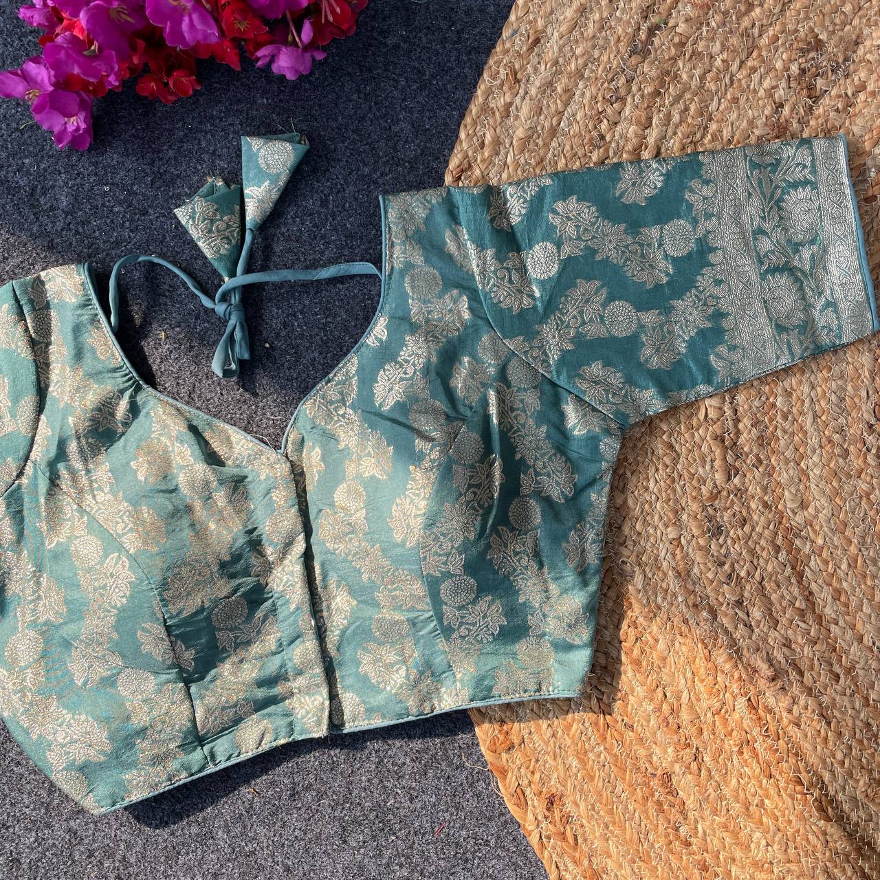 Featuring intricate detailing and traditional craftsmanship, it embodies the essence of Indian textile artistry. Whether you're dressing for a wedding, festive celebration, or a cultural event, this blouse adds a regal touch to your ensemble.