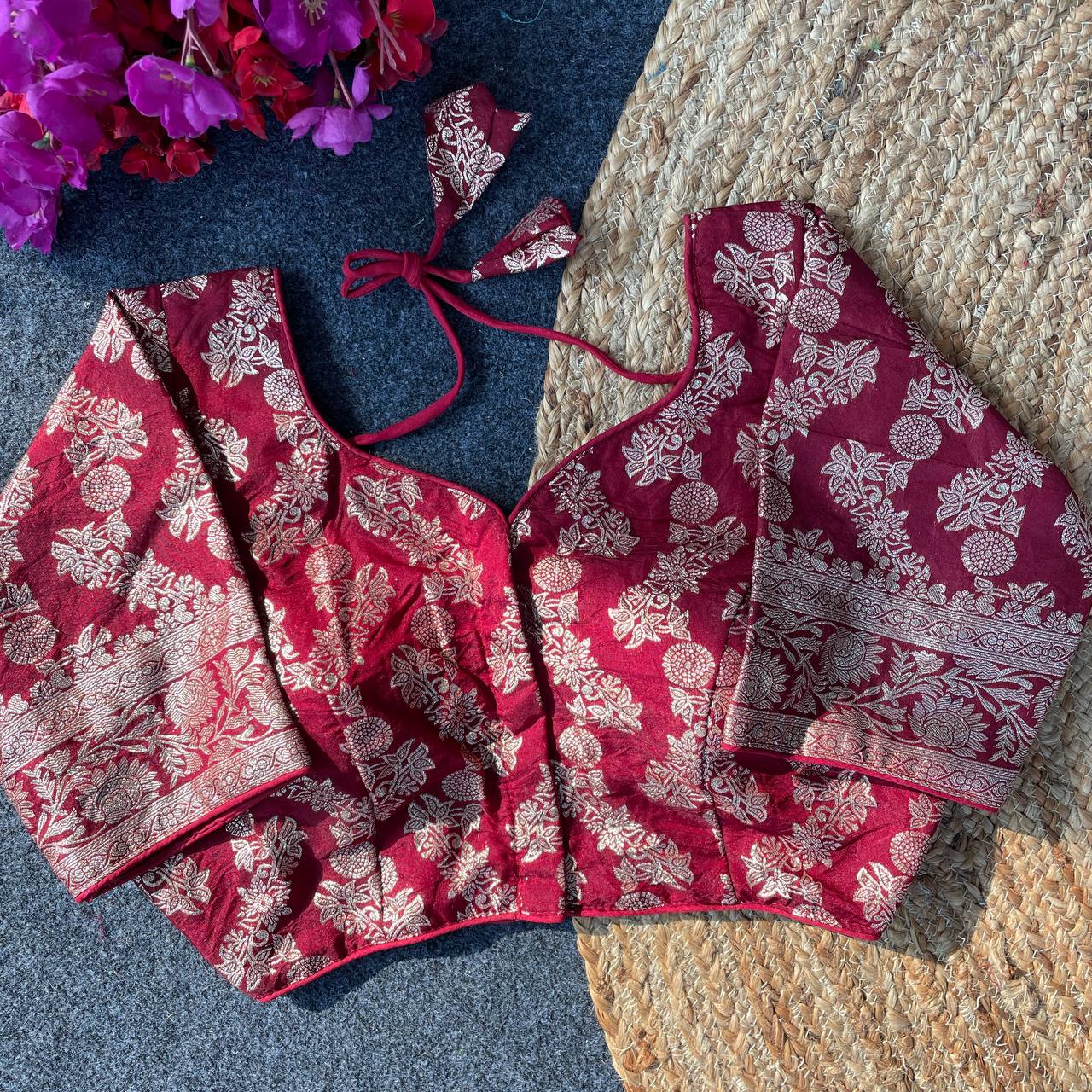 Featuring intricate detailing and traditional craftsmanship, it embodies the essence of Indian textile artistry. Whether you're dressing for a wedding, festive celebration, or a cultural event, this blouse adds a regal touch to your ensemble.