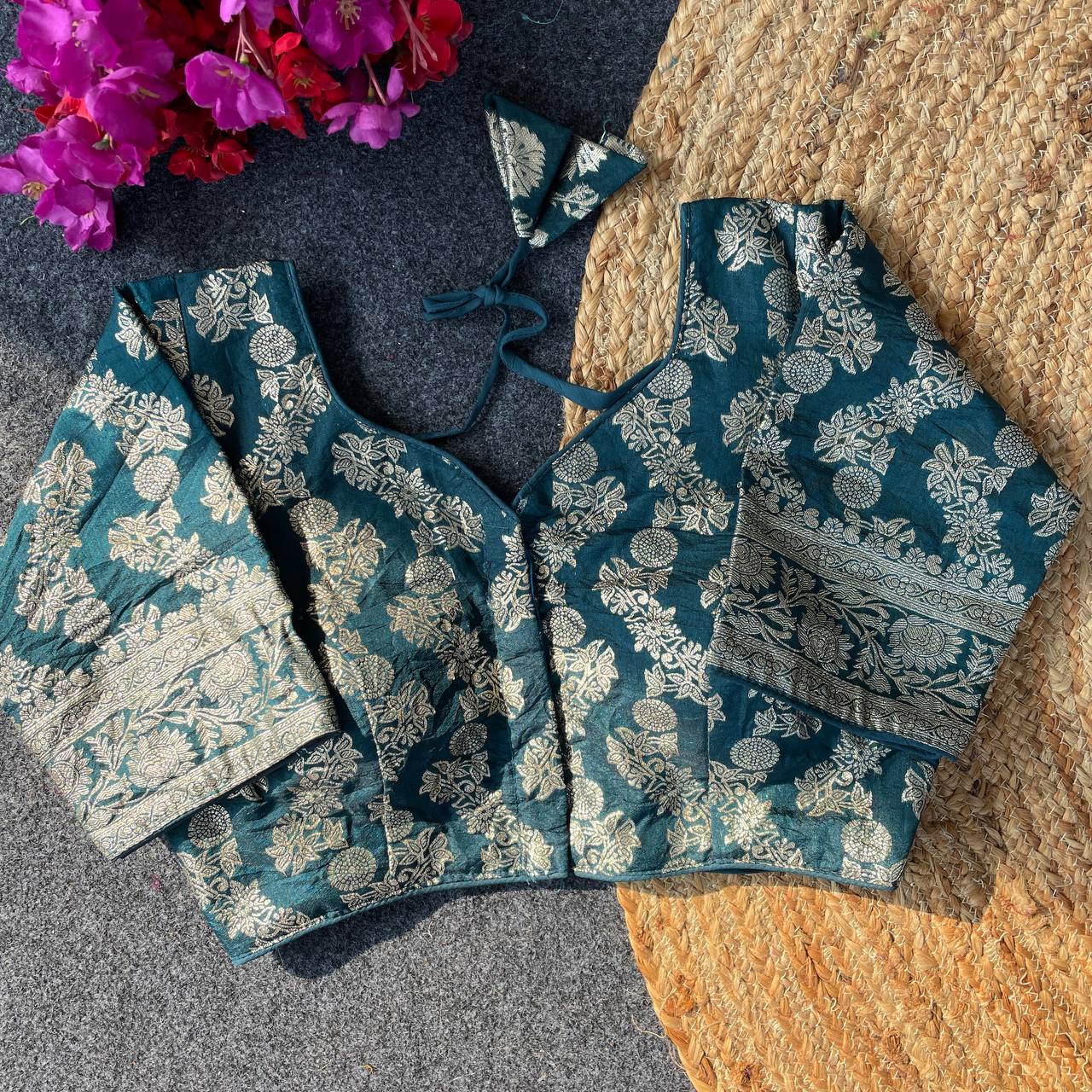 Featuring intricate detailing and traditional craftsmanship, it embodies the essence of Indian textile artistry. Whether you're dressing for a wedding, festive celebration, or a cultural event, this blouse adds a regal touch to your ensemble.