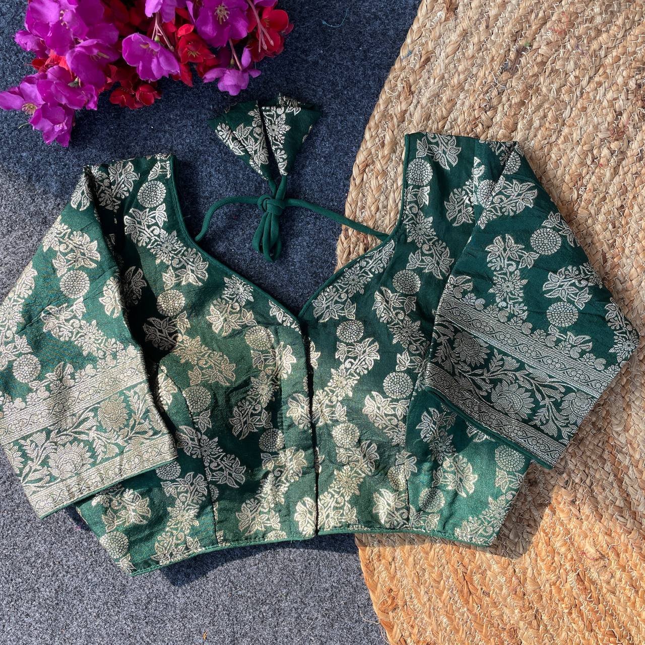 Featuring intricate detailing and traditional craftsmanship, it embodies the essence of Indian textile artistry. Whether you're dressing for a wedding, festive celebration, or a cultural event, this blouse adds a regal touch to your ensemble.