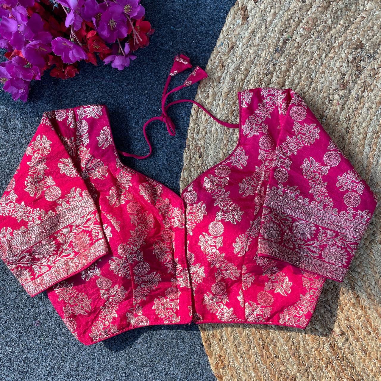 Featuring intricate detailing and traditional craftsmanship, it embodies the essence of Indian textile artistry. Whether you're dressing for a wedding, festive celebration, or a cultural event, this blouse adds a regal touch to your ensemble.
